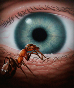 Der Macro-Realist Jörg Schlichtholz zeigt uns in seinen Acrylbildern nur Teilausschnitte von der Welt. Geschickt gewählt lässt er uns so auf das Ganze schließen. Spürt den Gegensätzen von groß und klein nach. Er zeigt uns zwei Welten, scheinbar unvereinbare - um sie letztlich doch zu verbinden. Er zeigt uns aber auch unsere Toleranzgrenzen auf wenn reale- und Macrowelt aufeinander stoßen. Fordert uns auf hinzusehen und weckt unser Interesse für das scheinbar Unwichtige. Wenn man sich auf seine Bilder einlässt, so sind es kleine Gleichnisse vom Leben mit einem Bezug zu uns selbst.